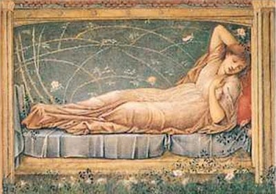 As they set her down in her bed in the golden chamber, the princess stirred a little. “What just happened?” she wondered. She didn’t remember getting ready for bed—wasn’t she just talking to that old lady with the spinning wheel? Oh, well, she’s feels so sleepy that it must just be her bedtime, and she’ll figure out what happened in the morning. As she settled back into her soft feather bed—with no idea of what’s to come—she believed she would get a regular full night’s sleep, the sleep of the young.